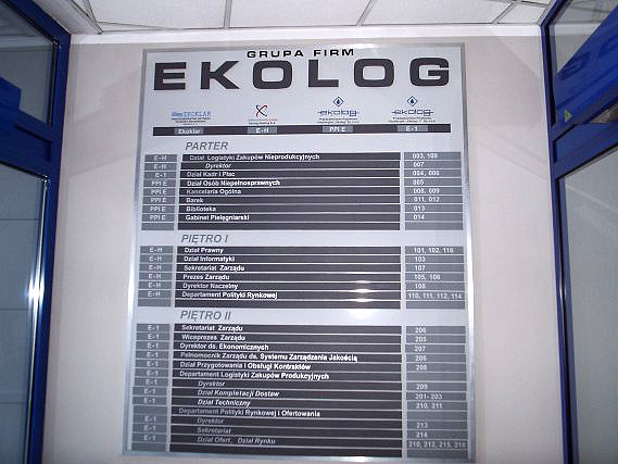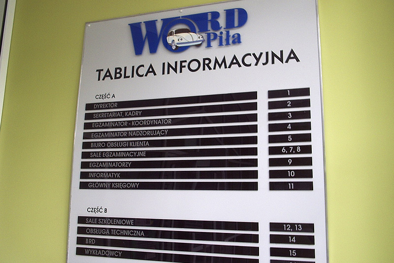 W zależności od zapotrzebowań naszych klientów wykonujemy oznakowania od prostych, po bardziej eleganckie i złożone. Tablice mogą być prostokątne, zaokrąglone, trójkątne, czy o innych nieregularnych kształtach. Aby podwyższyć atrakcyjność wykonania możemy wykorzystać metody grawerowania, lub zamieścić coraz bardziej popularne elementy przestrzennej grafiki 3d, wykonanej ze styroduru. Jest to materiał trwały łatwy w obróbce, dzięki czemu możemy stworzyć każdy dowolny kształt: logo, litery, strzałki, elementy zdobnicze. Styrodur można pomalować na dowolny kolor farbami akrylowymi, lub sylikatowymi.