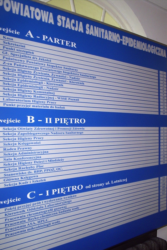 Oznakowanie wewnętrzne stosuje się praktycznie wszędzie, w: gastronomii, hotelach, biurach, instytucjach, szpitalach, etc. Mogą to być drobne tablice z oznakowaniem, z numerami pokojów, po tabliczki kierujące, ale mogą to być również tablice o większych wymiarach, które można spotkać przy wejściu.