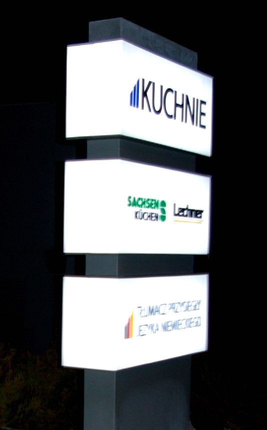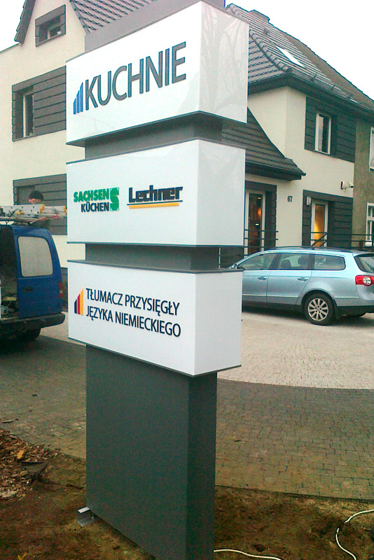 Są to reklamy wolnostojące o zróżnicowanych gabarytach potocznie nazywane jako : pylony świetlne, totemy, słupy podświetlane, witacze itp. Mogą one być wykonane w różnych formach i kształtach. Ich cechą charakterystyczną jest wyraźnie wyeksponowany logotyp. Może występować w wersji świetlnej - od wewnątrz lub podświetlanej od zewnątrz. Do wykonania stosujemy konstrukcję nośną (najczęściej stalową) oraz blach ocynkowanych, płyt PVC, PMMA (plexi), lub Dibond. Do reklam tych możemy zastosować oświetlenie montowane od środka, wykorzystując do tego celu lampy jarzeniowe, lub diody typu LED. Totemy i pylony możemy wykonać: