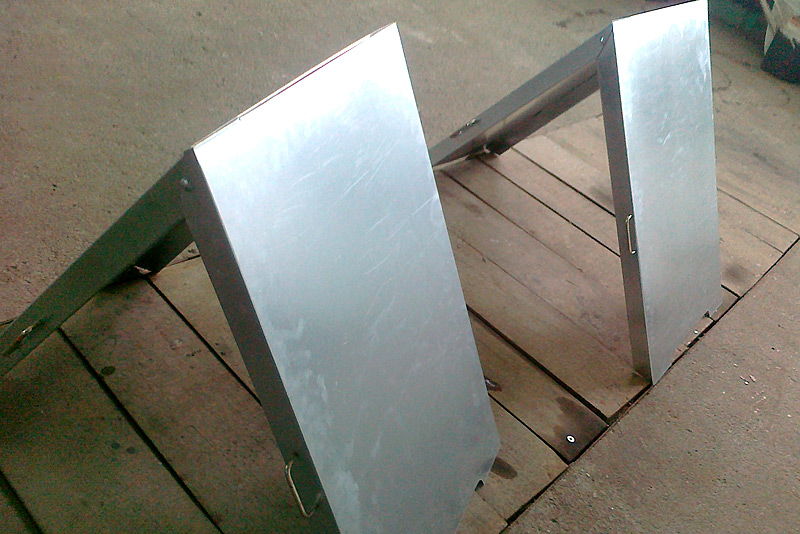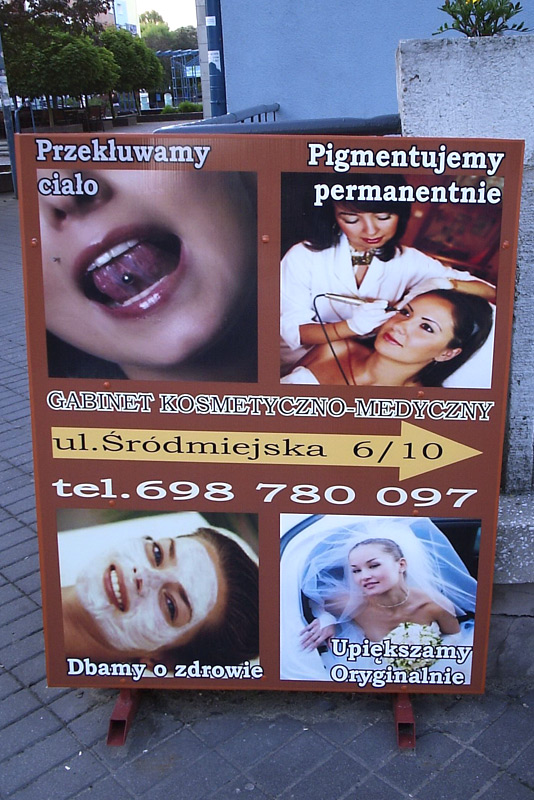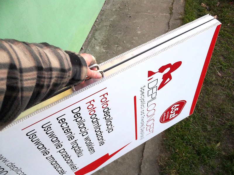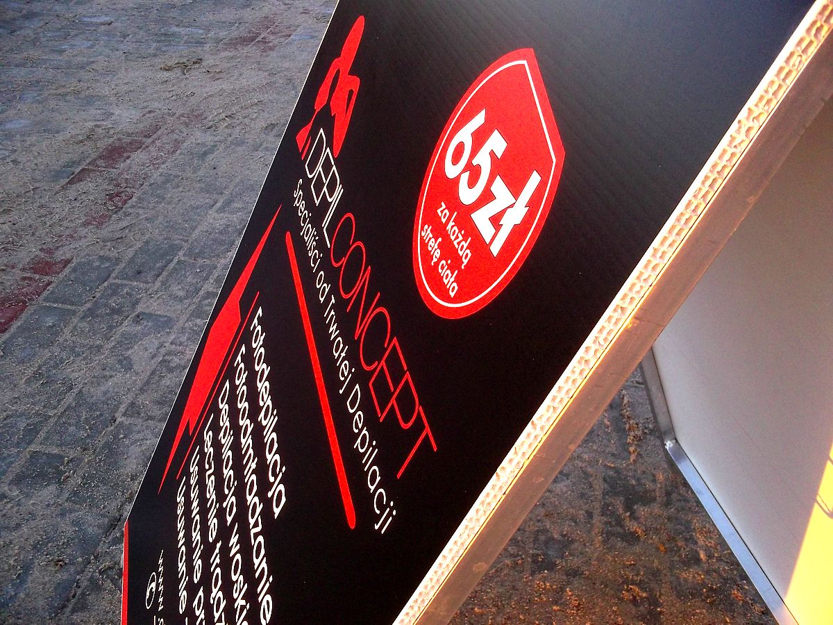 Stojaki i potykacze wykonujemy z płyt PMMA (pleksi) bezbarwnego, lub kolorowego o grubości 2mm, lub z blachy nierdzewnej ocynkowanej. Przezroczyste PMMA jest materiałem termoformowalnym, dzięki czemu nadajemy odpowiedni kształt stojakom, z możliwością wsuwania ulotek, menu i innych treści, jakich oczekuje klient. Ekspozytory wykonane ze stali nierdzewnej docinamy do odpowiedniego formatu i uginamy narożniki, by podwyższyć estetykę wykonania. W zależności od wymagań klienta możemy również wykonywać stojaki ze stopą z profili metalowych. Na gotową konstrukcję nanosimy grafikę. Mogą to być znaki firmowe, oraz inne dodatkowe treści reklamowe z pomocą folii ploterowych, wielobarwnych wydruków solwentowych, czy za pomocą grawerowania.